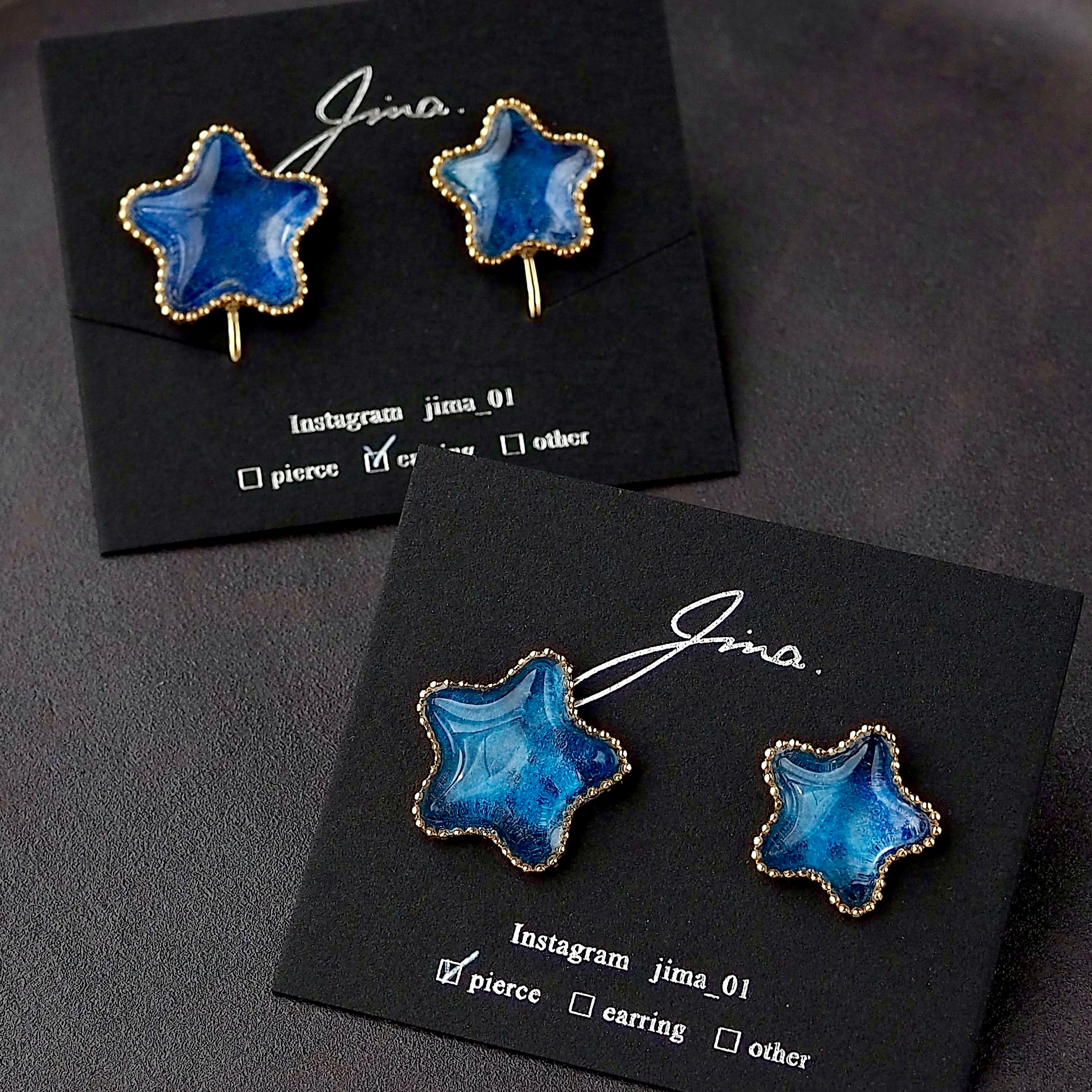 真夜中にひっそりと輝く北斗七星をイメージし、深い夜空の青色を落とし込んだキラキラのお星様を作りました。