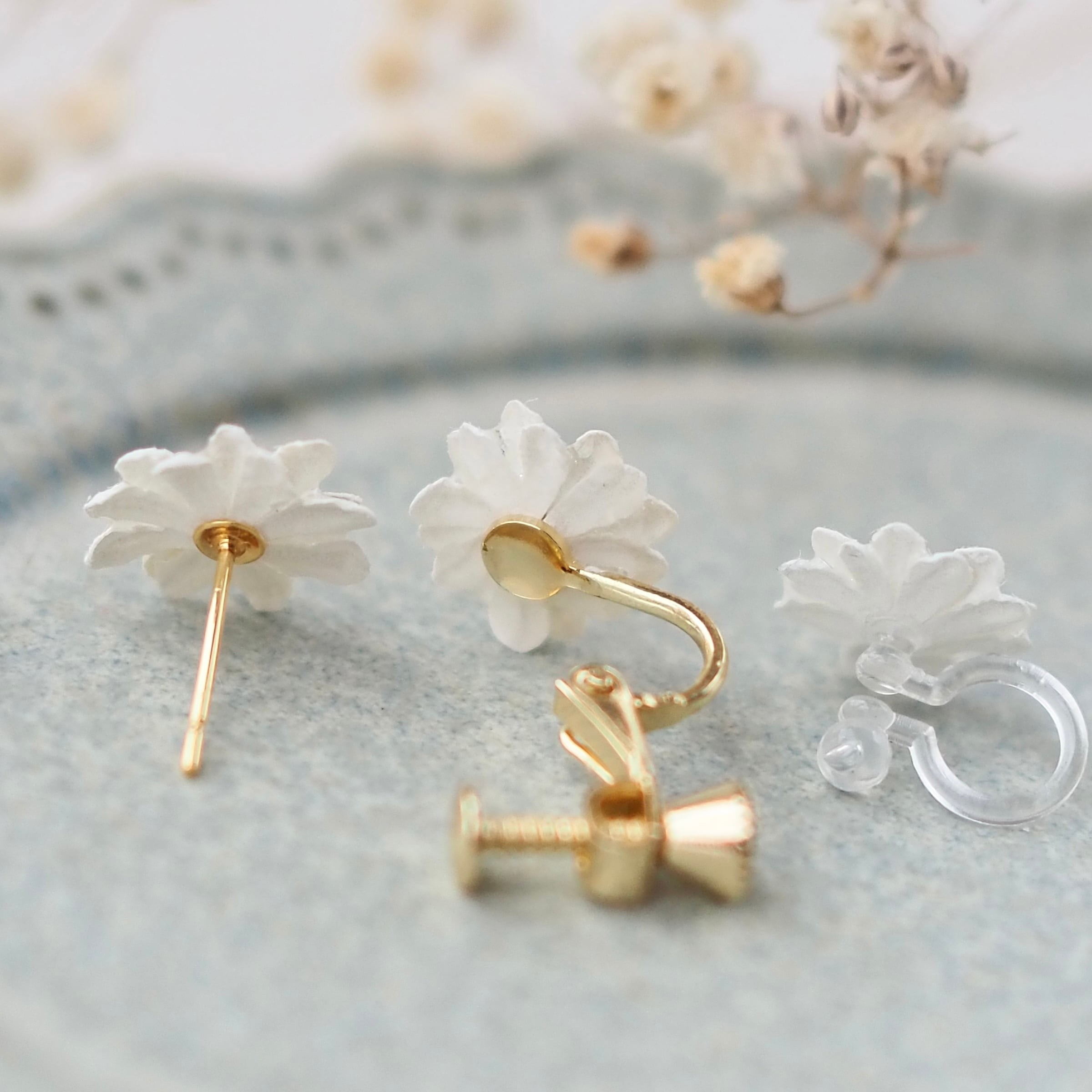 ガーベラやマーガレットのようなシンプルな形のお花の美濃和紙アクセサリーです。